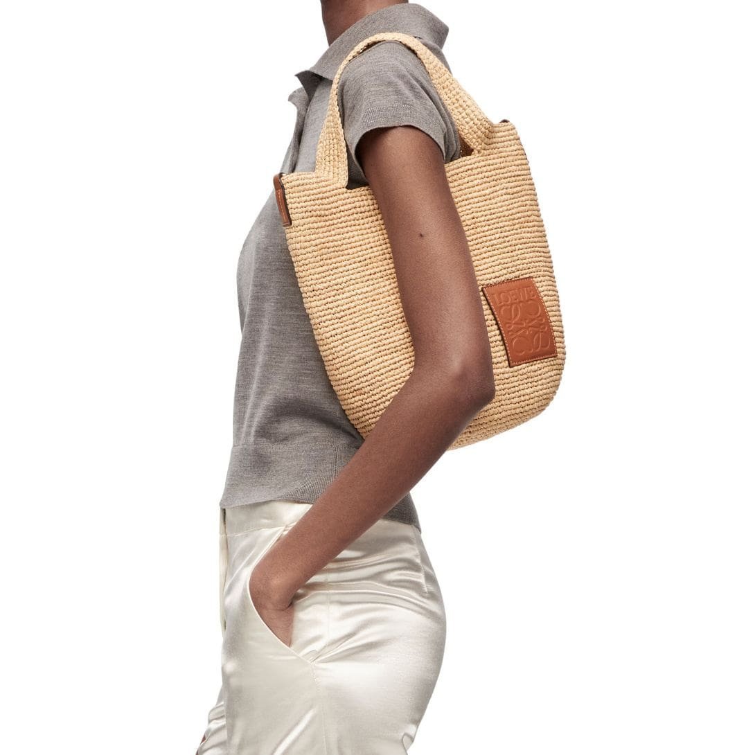 The LOEWE Mini Slit Bag in raffia and calfskin is a beautiful blend of luxury and practicality, designed to enhance any outfit with its sophisticated charm. This compact yet spacious accessory is perfect for those who appreciate high fashion and functionality in one elegant package.