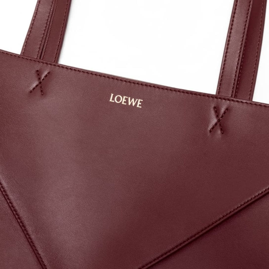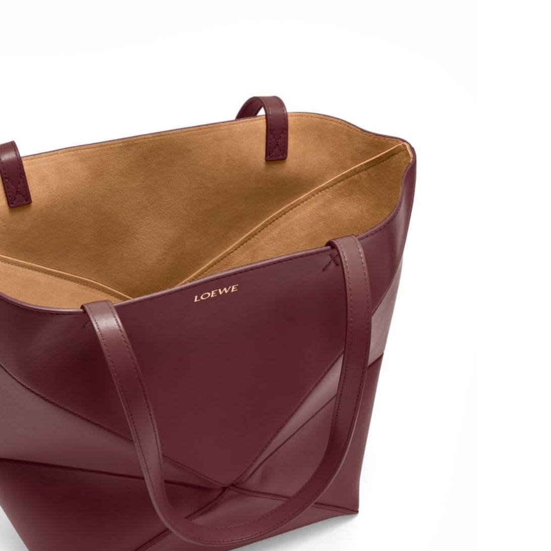 Indulge in luxury with the exquisite craftsmanship of the LOEWE Puzzle Fold Tote Bag In Shiny Calfskin, crafted from polished calf leather. This sophisticated accessory is both timeless and versatile, embodying the epitome of elegance.