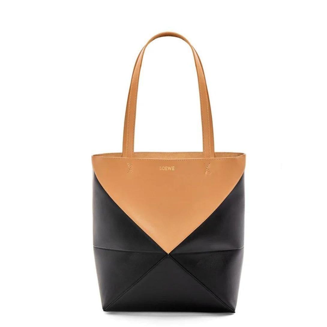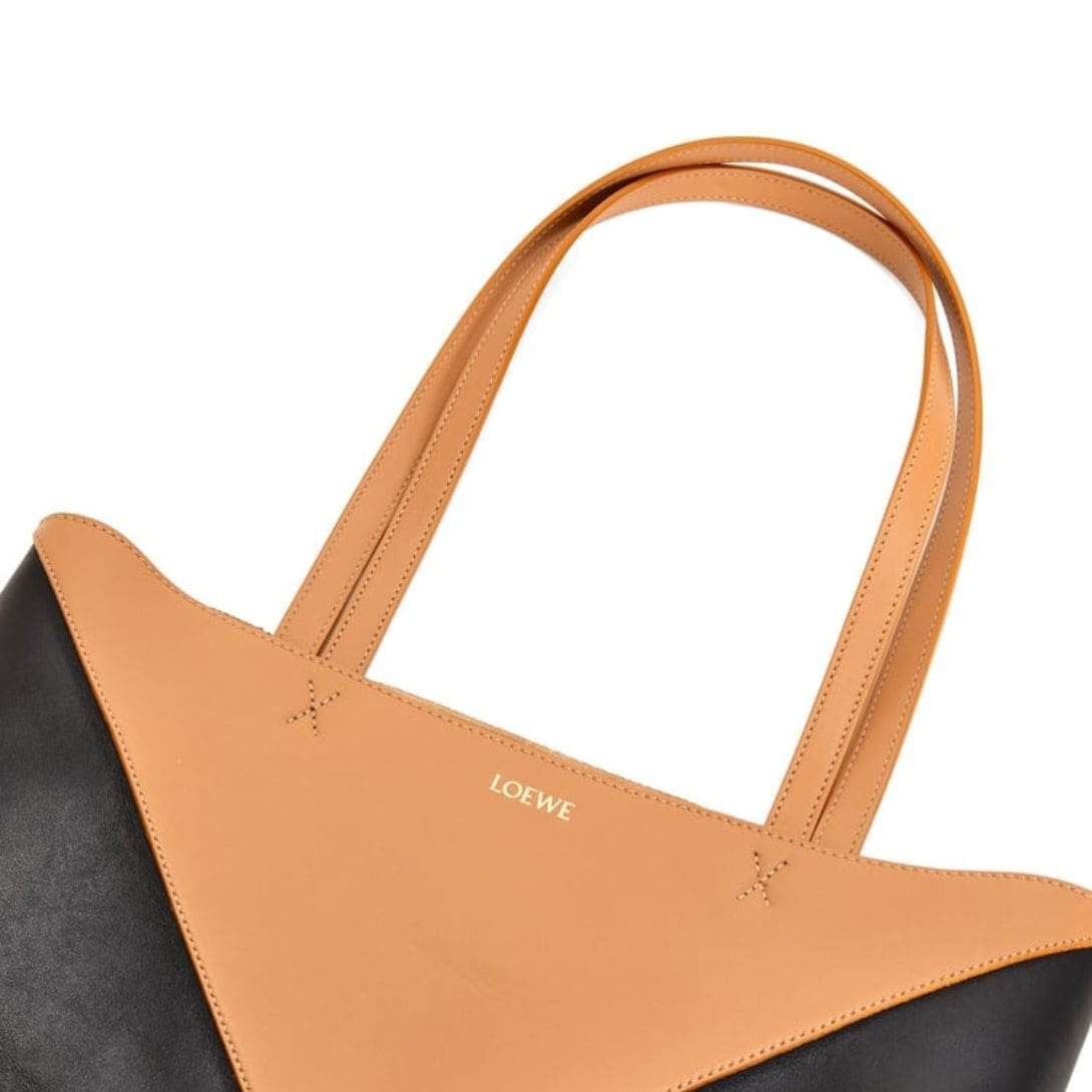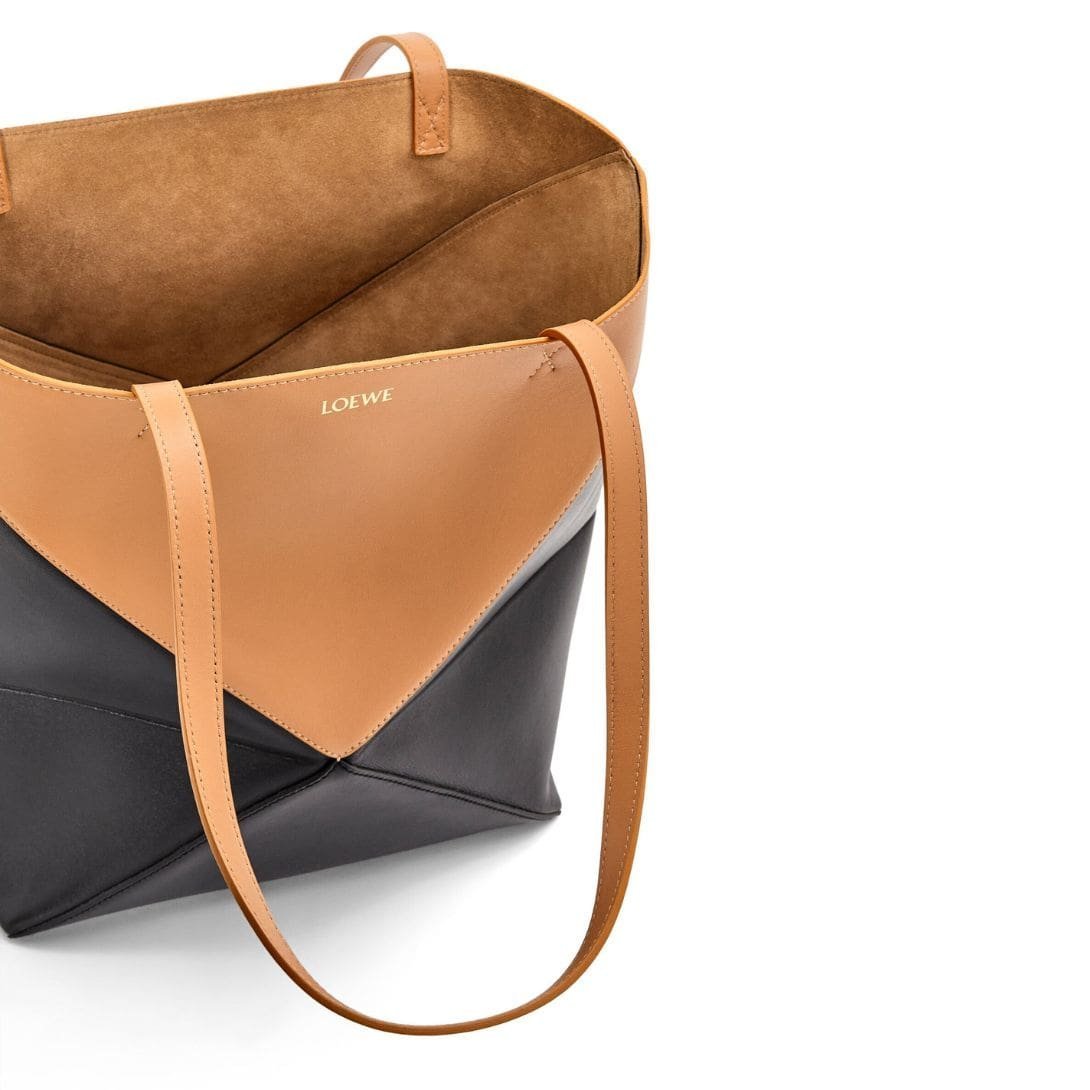 Indulge in luxury with the exquisite craftsmanship of the LOEWE Puzzle Fold Tote Bag In Shiny Calfskin, crafted from polished calf leather. This sophisticated accessory is both timeless and versatile, embodying the epitome of elegance.