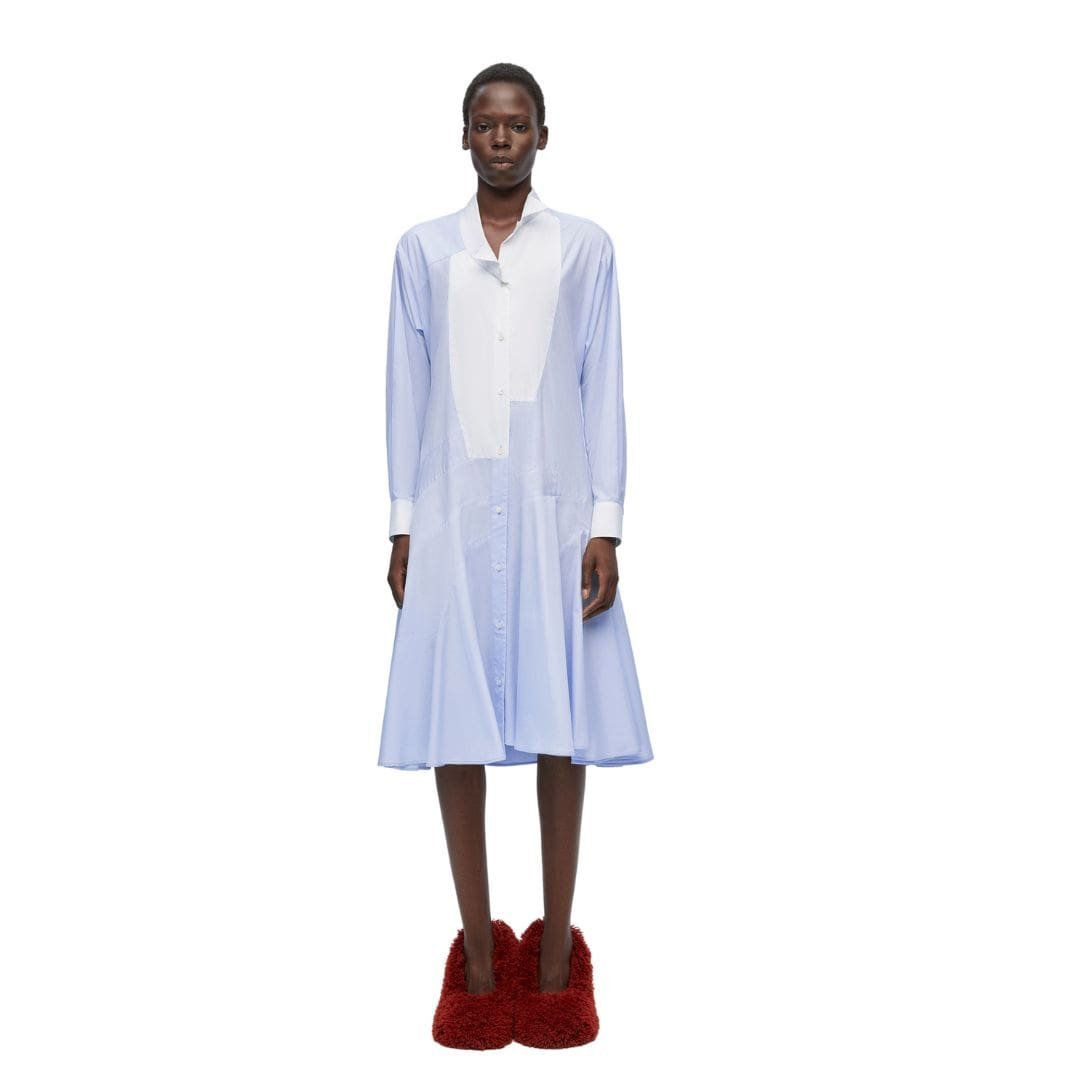 Loewe’s attention to detail is evident in the meticulous construction of this dress. The seams and hems are expertly finished, reflecting the brand’s commitment to quality craftsmanship. The versatile design allows the dress to transition seamlessly from casual daytime wear to elegant evening attire. Pair it with sandals and a wide-brimmed hat for a chic daytime look, or accessorize with statement jewelry and heels for a sophisticated evening ensemble.