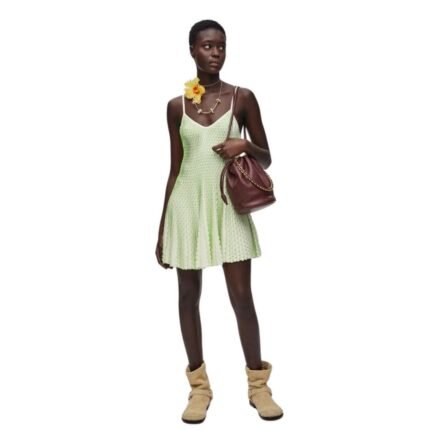 Loewe’s attention to detail is evident in the meticulous construction of this dress. The seams and hems are expertly finished, reflecting the brand’s commitment to quality craftsmanship. The versatile design allows the dress to transition seamlessly from casual daytime wear to elegant evening attire. Pair it with sandals and a wide-brimmed hat for a chic daytime look, or accessorize with statement jewelry and heels for a sophisticated evening ensemble.