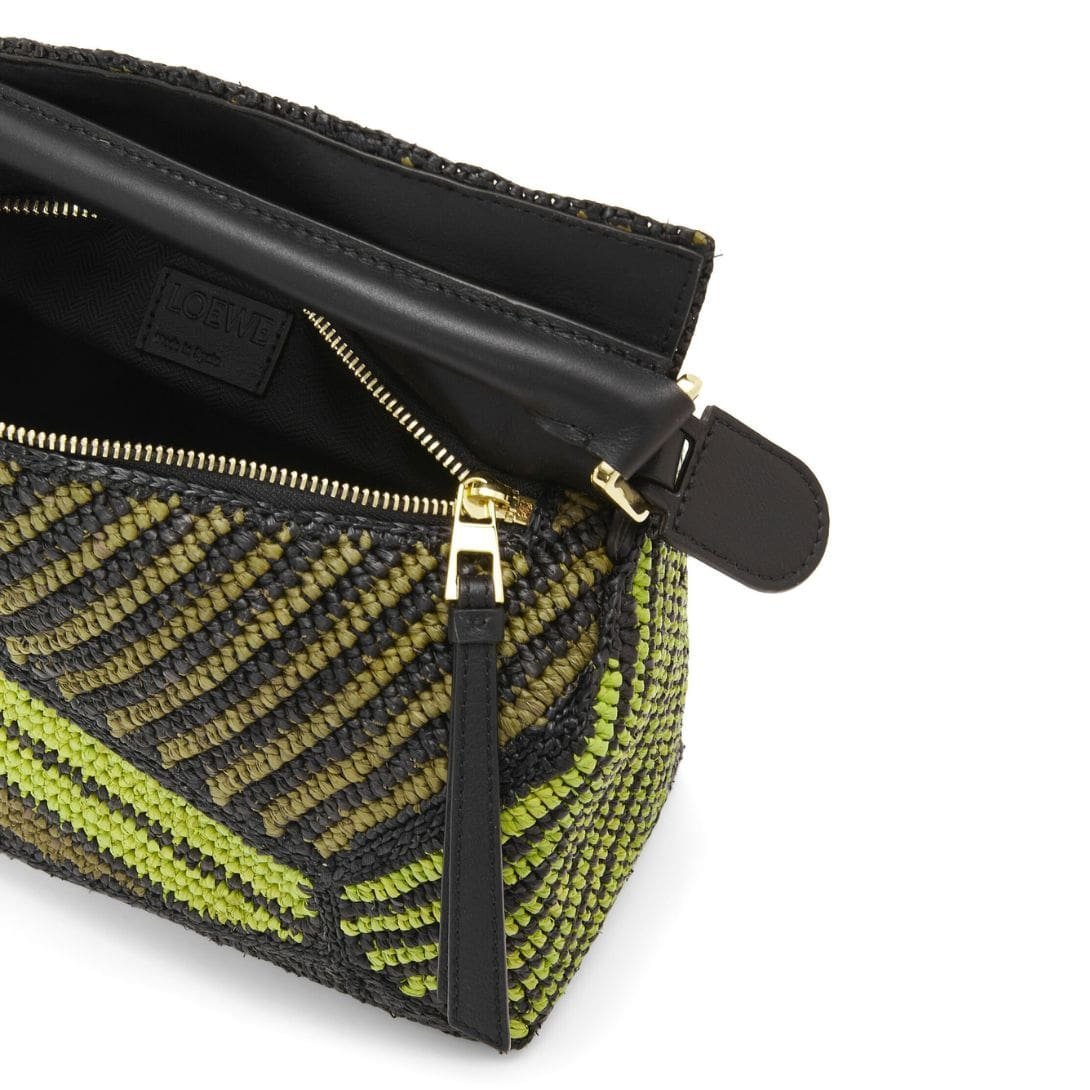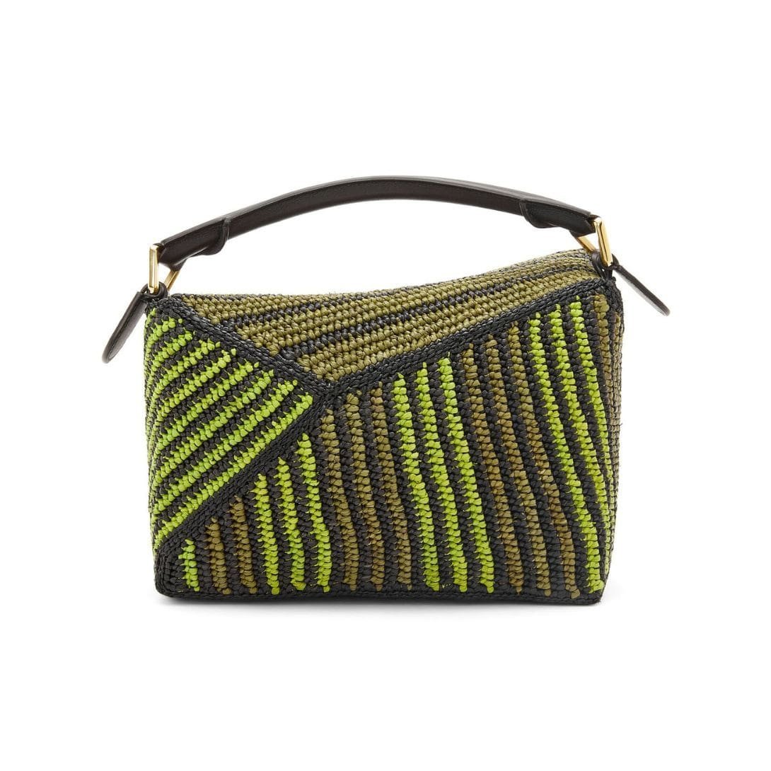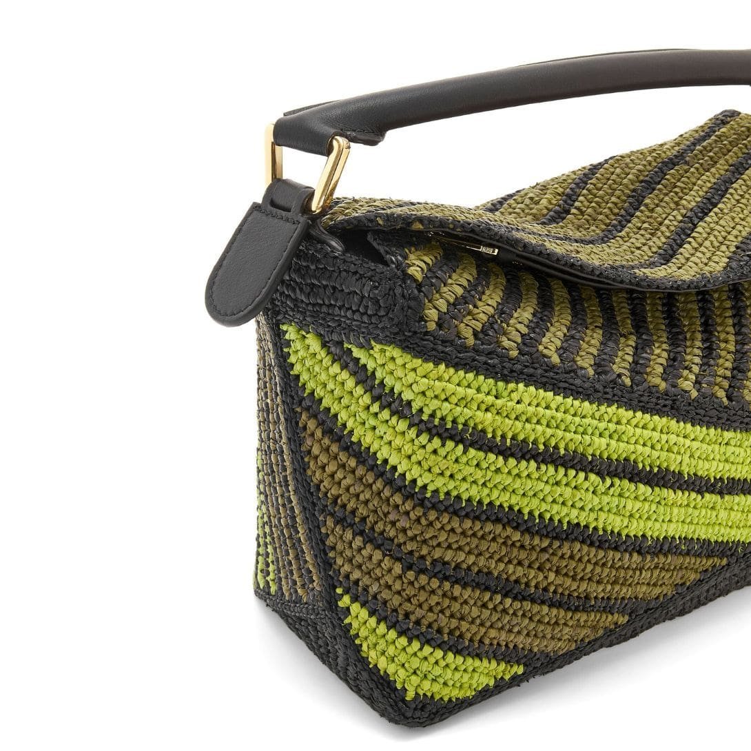 LOEWE SMALL PUZZLE EDGE BAG IN RAFFIA AND CALFSKIN