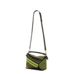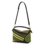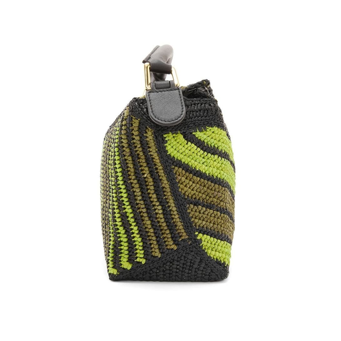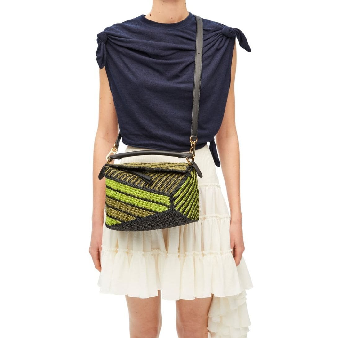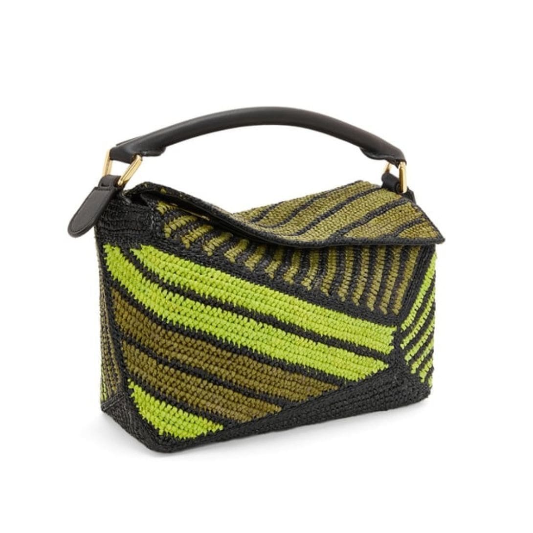 LOEWE SMALL PUZZLE EDGE BAG IN RAFFIA AND CALFSKIN
