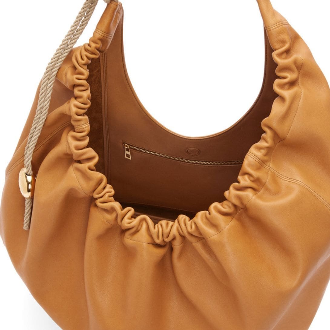 The natural calfskin leather is complemented by subtle LOEWE branding, adding a touch of understated sophistication to the design. Finished with high-quality hardware and meticulous stitching, every detail of the Squeeze XL Bag speaks to the brand’s commitment to excellence.