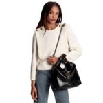 Measuring 11.8 x 16.1 x 4.3 inches, the LOUIS VUITTON ATLANTIS MM boasts a sleek black exterior adorned with Monogram canvas trim, accentuating the brand’s iconic aesthetic. Silver-tone hardware adds a contemporary touch, while the adjustable leather braided chain, featuring the LV Circle signature, infuses the design with a rebellious charm.