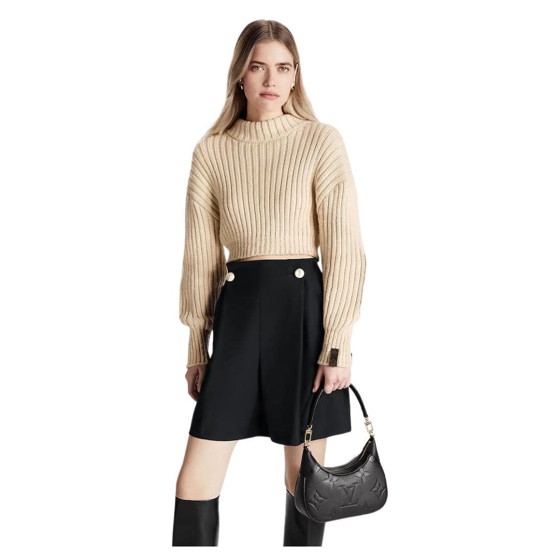 Measuring 9.4 x 7.1 x 2.8 inches, the LOUIS VUITTON BAGATELLE epitomizes understated glamour in classic black, complemented by supple-grained-cowhide leather trim and gold-color hardware that adds a touch of luxury to the design. The tonal microfiber lining enhances its refined aesthetic, while the zip closure ensures the security of your essentials.