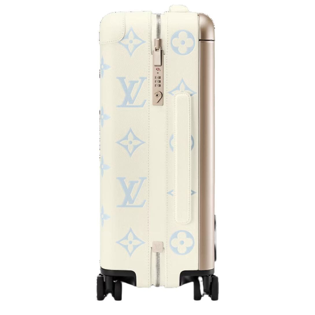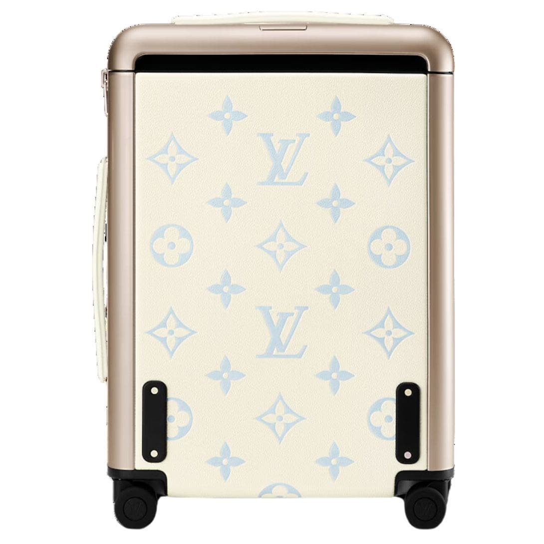 Measuring 15 x 21.7 x 8.3 inches, the LOUIS VUITTON HORIZON 55 in Latte Candy Blue is as practical as it is stylish, offering ample space for all your travel essentials. Enhanced with refined supple grained cowhide-leather trim and leather corners, this trolley case exudes enduring charm and resilience.