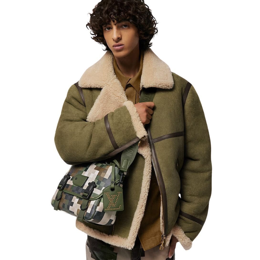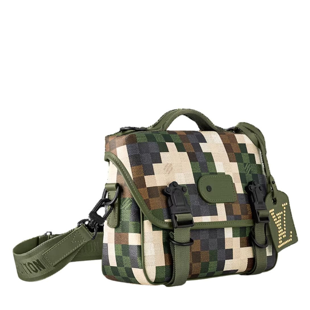 Introducing the LOUIS VUITTON LV TRAIL MESSENGER, a bold fusion of urban sophistication and natural allure envisioned by Creative Director Pharrell Williams. This distinctive messenger bag showcases Williams’ innovative pixelated Damoflage coated canvas, a captivating blend of the House’s classic Damier motif with camouflage, symbolizing the harmonious coexistence of polished urban landscapes and the untamed beauty of nature.