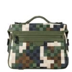 Measuring a generous 12.2 x 8.7 x 4.3 inches (length x height x width), this bag is not only visually striking but also designed for practical functionality. The Camouflage Green canvas commands attention, while the leather trim and black-color hardware add a touch of refinement.