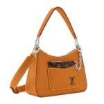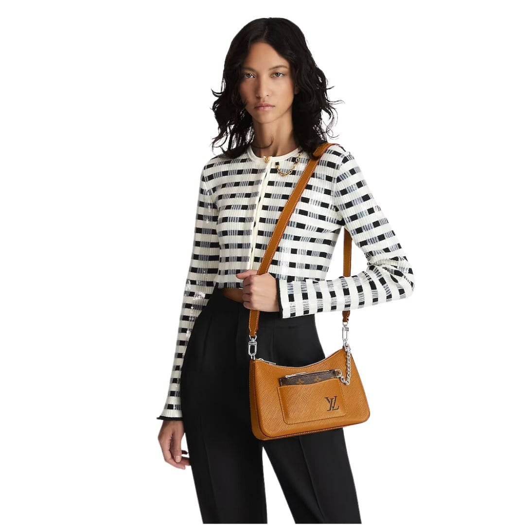 Designed for versatility, the Marelle handbag can be carried by hand, elbow, or shoulder with its detachable top handle, or worn as a cross-body thanks to its removable and adjustable leather strap. Louis Vuitton’s commitment to sustainability is evident in the sourcing of the leather, which comes from tanneries audited and certified by the Leather Working Group.