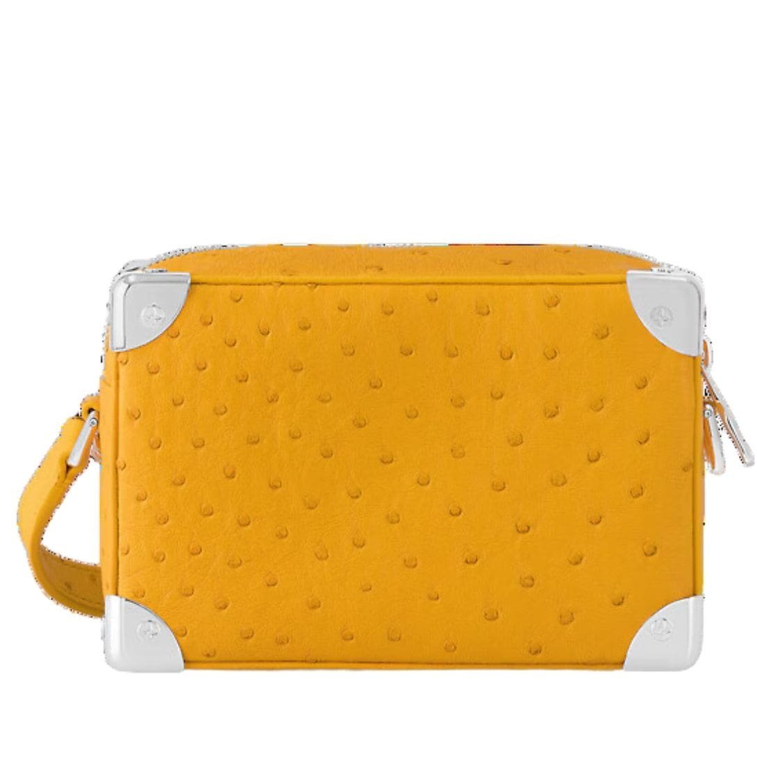 Introducing the LOUIS VUITTON MINI SOFT TRUNK, a stunning embodiment of luxury and sophistication that echoes the vibrant hues of the Spring-Summer 2024 Collection. Crafted from exquisite ostrich leather in a radiant shade of yellow, this accessory exudes a luminous allure, capturing attention wherever you go.