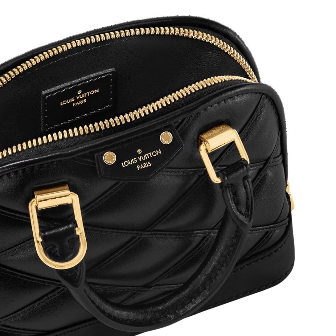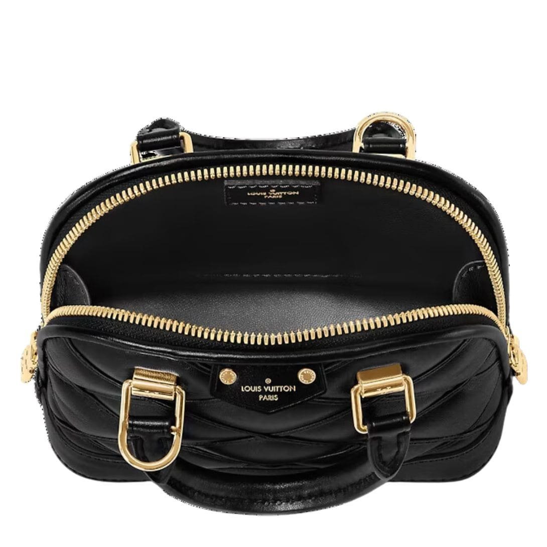 Versatility is key with the LOUIS VUITTON NANO ALMA, as it features two handles, a removable, adjustable leather shoulder strap, and a detachable gold-tone chain. This allows you to switch up your look effortlessly, whether carrying it by hand, over the shoulder, or crossbody.
