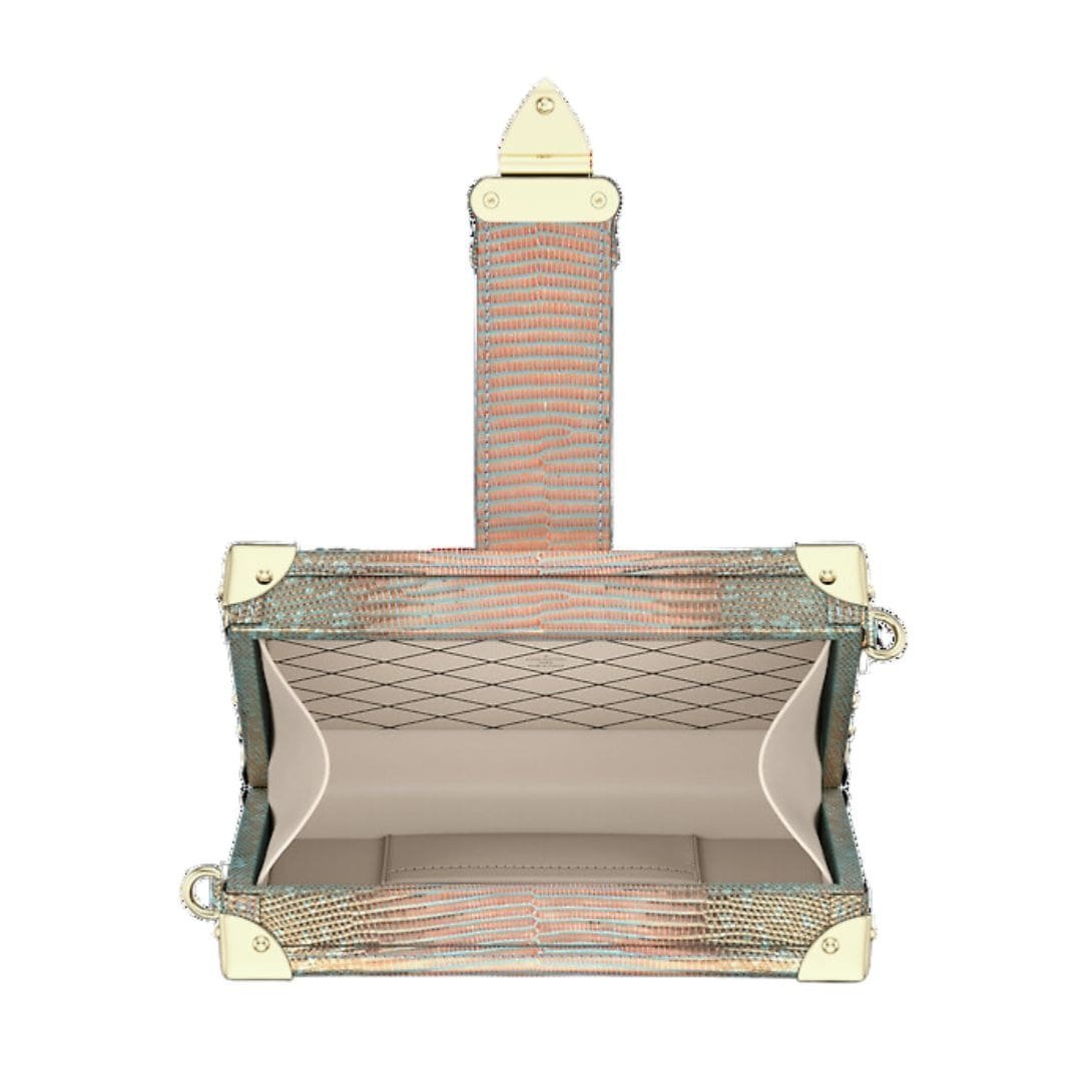 Introducing the Petite Malle handbag, a true masterpiece born from the visionary creativity of Nicolas Ghesquière, who ingeniously reimagined the iconic fittings of historic House trunks. Crafted from sumptuous lizard leather, this covetable “little trunk” embodies elegance that seamlessly transitions from day to night with effortless grace.