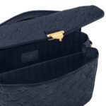Measuring 9.8 x 7.5 x 2.8 inches, this iteration in Navy Blue boasts cowhide leather trim and gold-color hardware, accentuating its refined appeal. The leather top handle and removable, adjustable strap offer versatile carry options, ensuring comfort and convenience wherever you go.