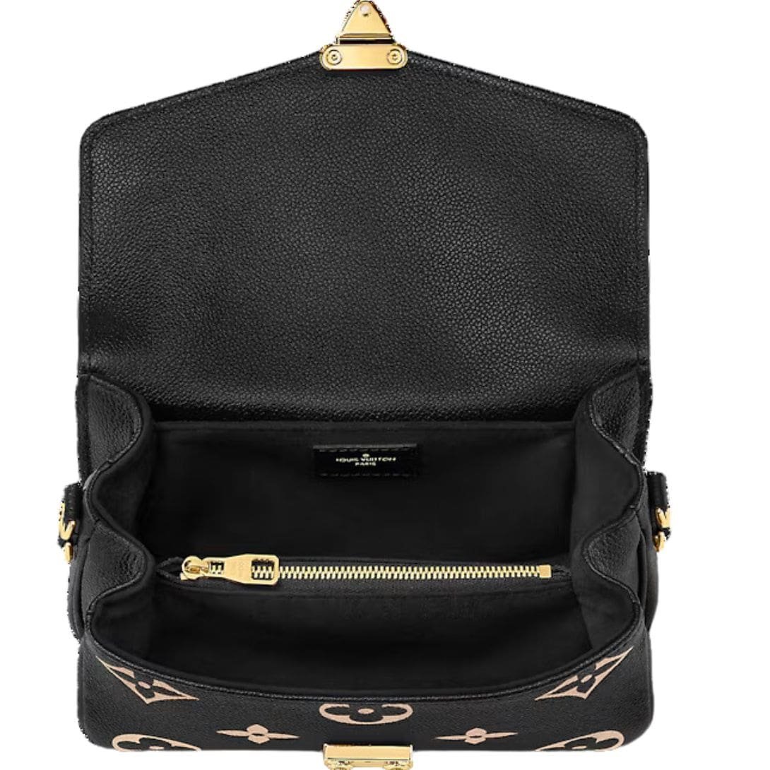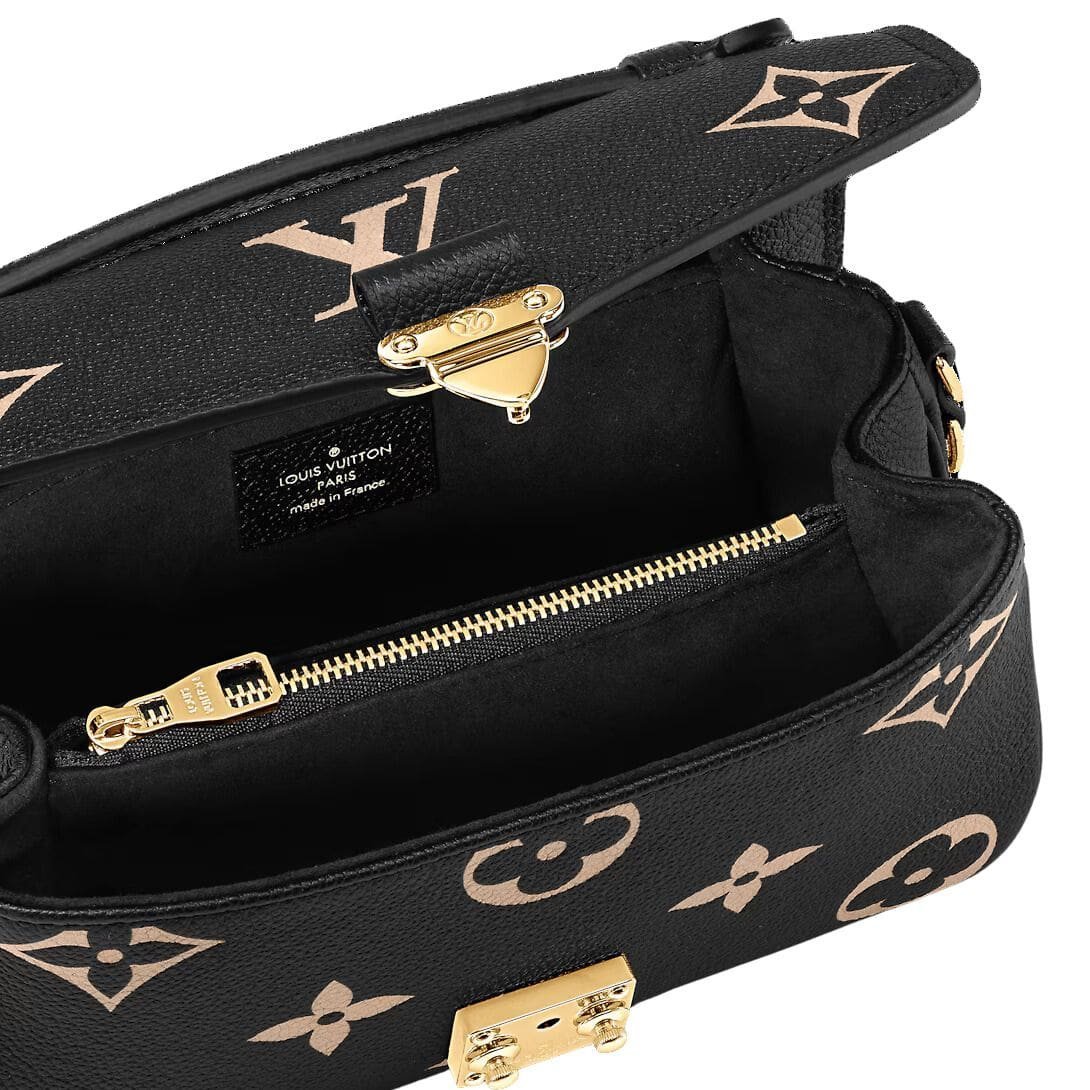 Designed with functionality in mind, the LOUIS VUITTON POCHETTE METIS EAST WEST features three interior compartments, including a convenient middle zipped pocket, ideal for organizing essentials. An outside zipped pocket provides easy access to frequently used items, enhancing its usability.