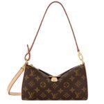 It introduces the effortlessly chic LOUIS VUITTON POCHETTE TIRETTE in Monogram canvas, a small bag that made a statement as the opening piece of Louis Vuitton’s Spring-Summer 2024 show. This on-trend accessory features a slouchy shape, perfectly complemented by natural leather trim, particularly on the sides, reminiscent of the iconic ogive shape of the House’s zip pulls.
