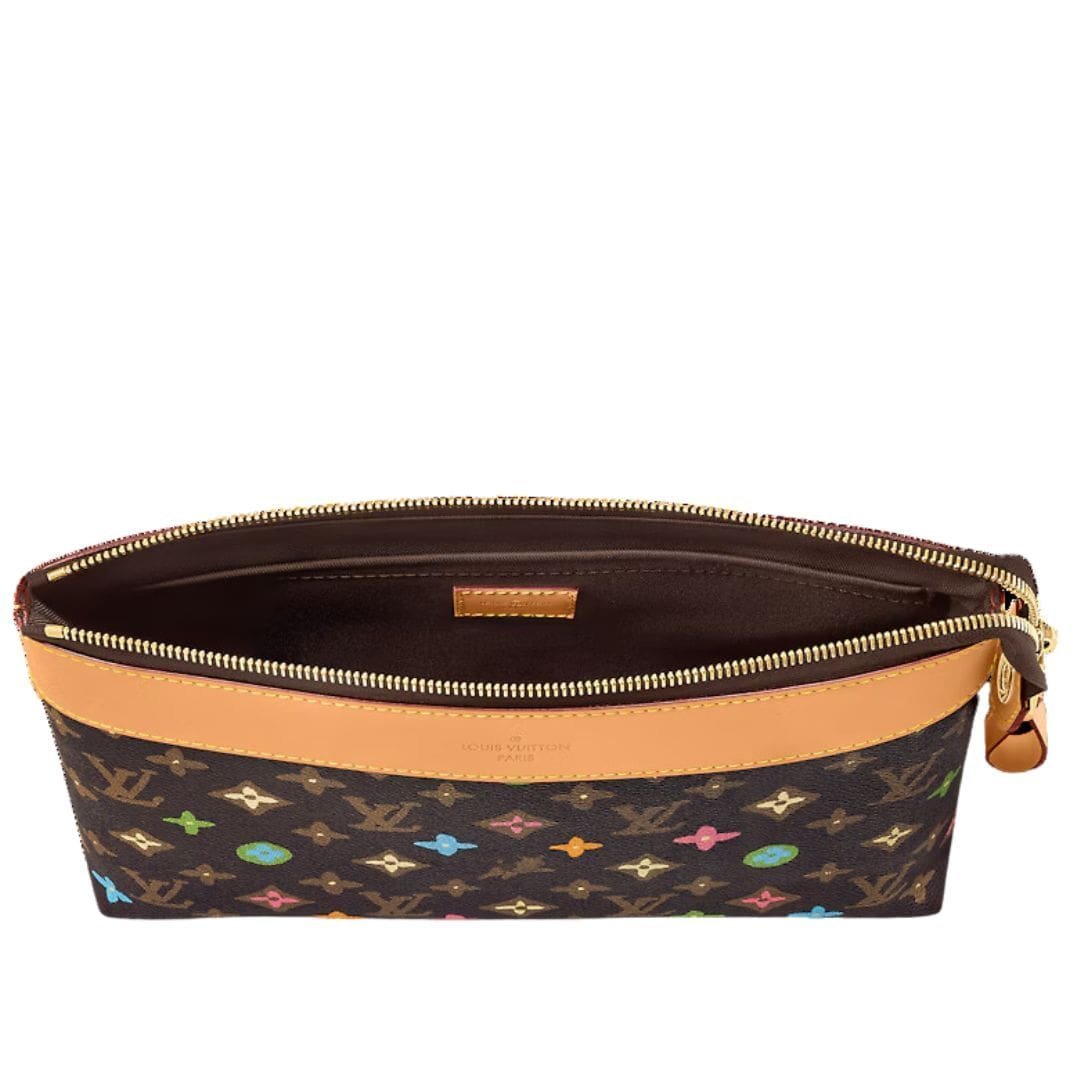 The LOUIS VUITTON POCHETTE VOYAGE SOUPLE in Monogram Craggy canvas offers a fresh, artistic twist on the classic Monogram canvas. Designed with meticulous attention to detail, this piece is both functional and stylish, making it a versatile accessory for the modern individual. The unique hand-drawn pattern, enriched with Tyler’s playful terrier and daisy illustrations, adds a whimsical touch to its sophisticated design.