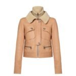 The Louis Vuitton Shearling Collar Leather Jacket is an epitome of luxurious craftsmanship and timeless elegance. This jacket is crafted in a trim, feminine silhouette from supple grained lambskin, embodying the House’s esteemed leather goods heritage. The grès beige hue adds a touch of sophistication, making it a versatile piece for any wardrobe.