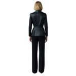 - Peplum silhouette with pleats and subtle flounce