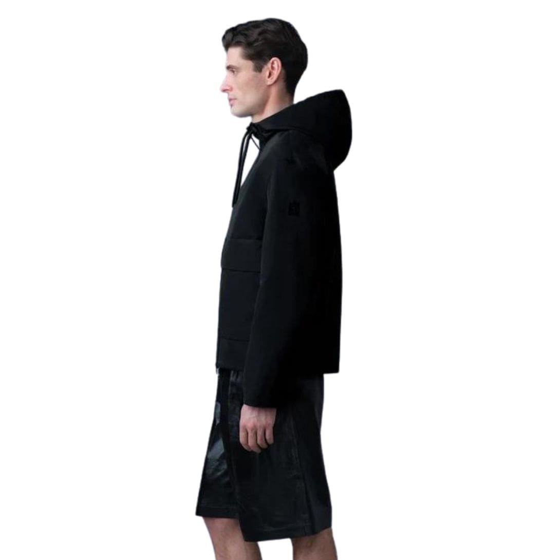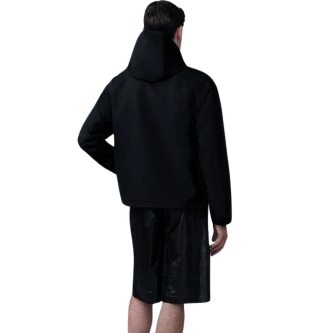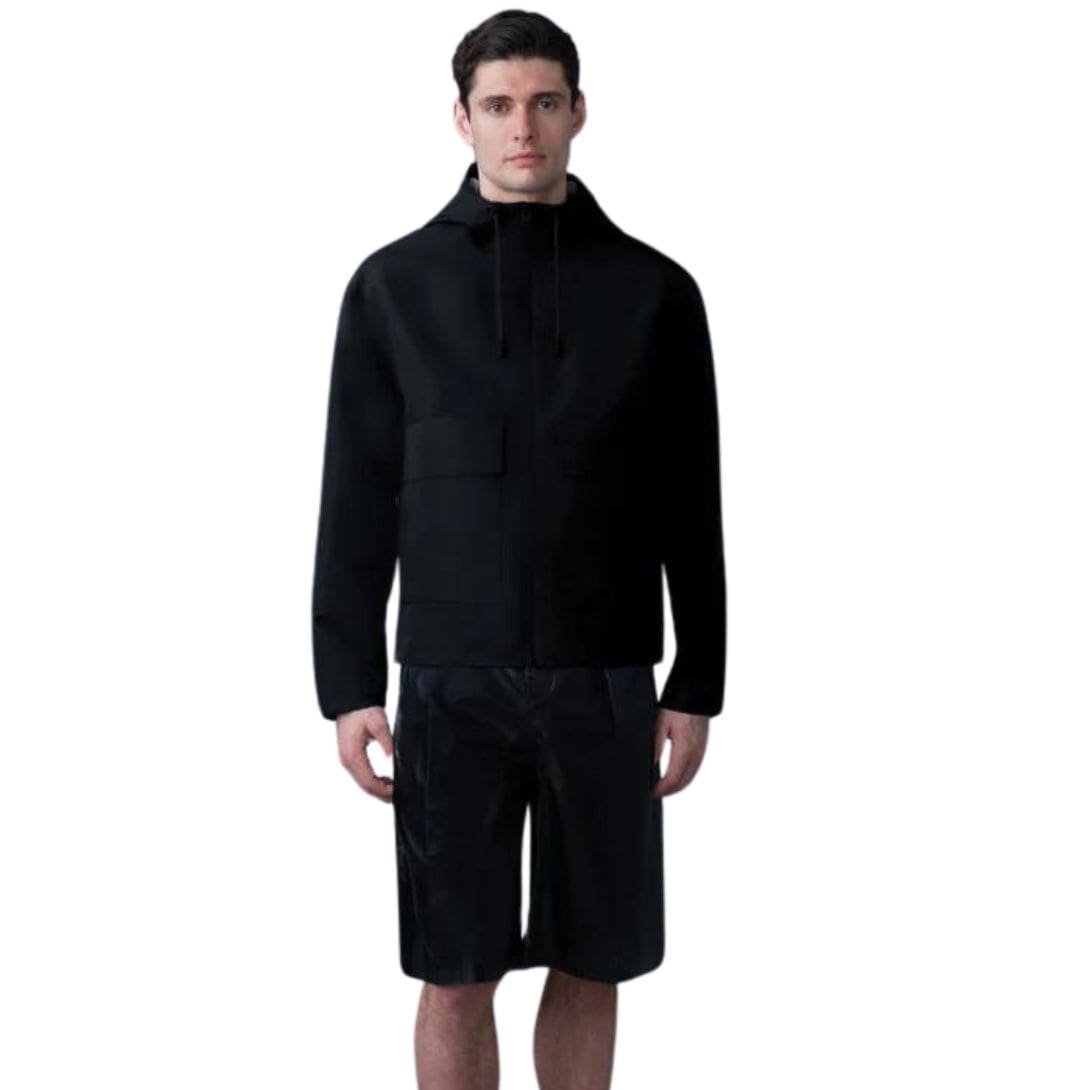 Introducing The Mackage Eric Recycled Technical Jacket with Hood is a short rain jacket with a 2-layer tech shell made from 100% recycled materials.Seam-sealed constructed and unlined, it is water-resistant, repellent, and windproof.Water-resistant zippers, drawcord at waist and cuffs, and adjustable storm visor at hood deliver ultimate dryproof protection.