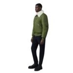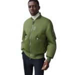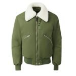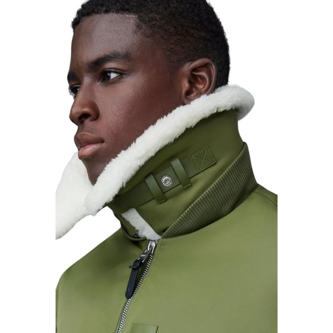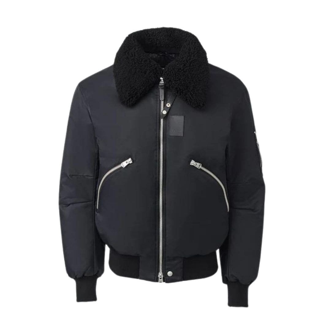 Introducing the Mackage Francis Down Bomber Jacket with Shearling Collar for men, crafted with a commitment to sustainability and style. This jacket is made from 100% recycled water-resistant and windproof material, ensuring both environmental consciousness and practicality. Bold detailing such as the removable shearling spread collar and vintage aviator mask clip pay homage to classic styling while adding a contemporary edge.