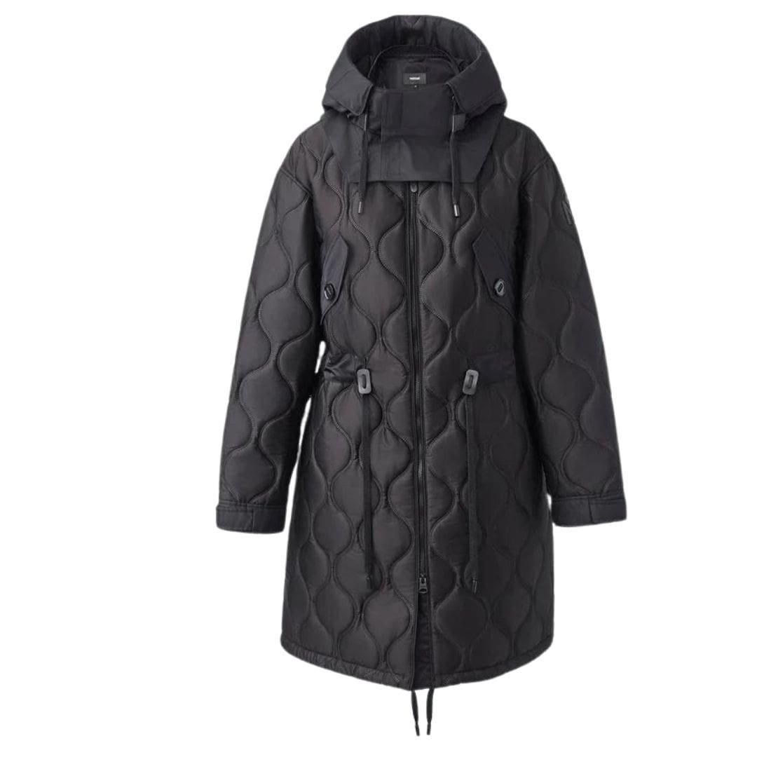 Description: Meet KULA, the epitome of sustainable luxury. Crafted from 100% recycled technical material, this long coat combines heritage heat stamp quilting with modern functionality. With water-resistant, repellent, and windproof properties, along with a removable hood and adjustable drawcord at the waist, KULA offers versatile styling options without compromising on comfort or performance.