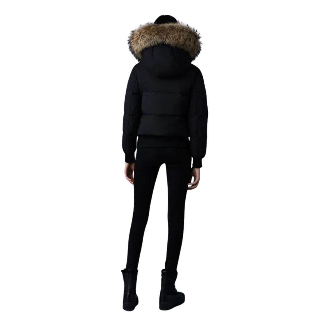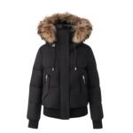 Introducing Mackage Nefi-F Down Jacket with Removable Fur Trimmed Hood, a medium-down bomber jacket for women, crafted with our proprietary bonded Nordic Tech Shell. Finely tailored and engineered to withstand harsh temperatures, this jacket features a removable lustrous down hooded bib with a detachable fur trim. Double-entry pockets with insulated lining and rib-knit trims enhance its highly functional yet stylish design. Elevate your winter wardrobe while staying warm in sub-zero temperatures.