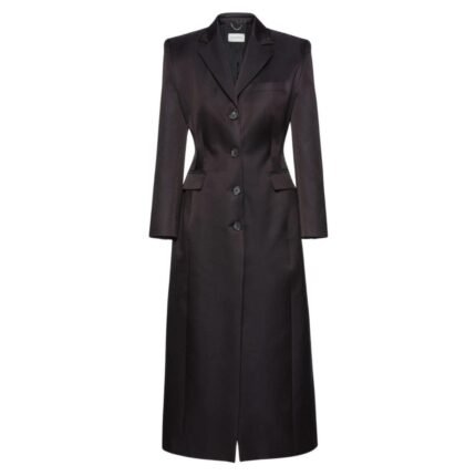 A single horn button closure at the top offers a nod to traditional tailoring, providing a polished finish to the coat’s front. This subtle yet distinctive detail adds a touch of refinement, elevating the overall look with a hint of luxury.