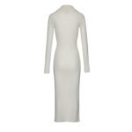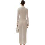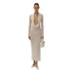 Overall, Magda Butrym’s bouclé knit cowl neck midi dress in cream is a versatile and refined addition to any wardrobe. Its blend of classic design elements and modern fabric texture makes it a standout piece for those who appreciate elegance and comfort. Ideal for both casual and more formal settings, this dress is sure to become a favorite for its flattering fit and luxurious feel.