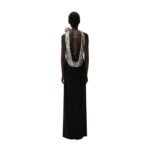 The drama continues at the back with an even deeper draping, adding an element of allure and sophistication. This open back design not only enhances the top’s glamorous appeal but also adds a touch of romantic elegance, making it perfect for special occasions and evening events.