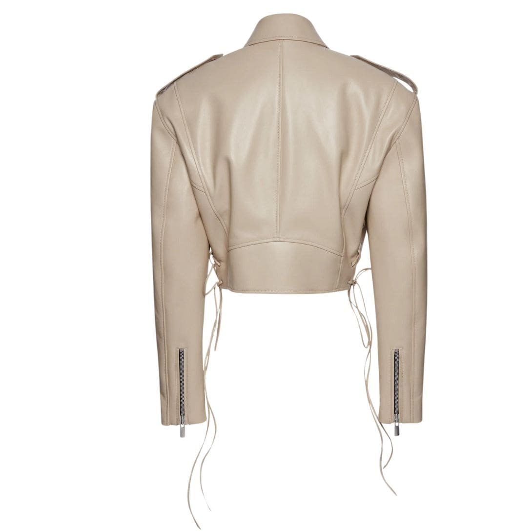 MAGDA BUTRYM CROPPED LEATHER BIKER JACKET IN BEIGE