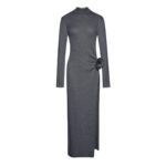 Overall, Magda Butrym’s high-neck knit maxi dress in gray combines timeless elegance with contemporary luxury. Its blend of wool and cashmere, along with exquisite craftsmanship and thoughtful design elements, ensures it stands out as a statement piece for sophisticated wardrobes. Ideal for those who appreciate refined fashion and impeccable quality, this dress promises to elevate any occasion with its effortless sophistication and understated glamour.