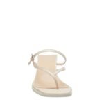 In essence, the Magda Butrym Low Thong Heel Sandal in Cream Leather is a sophisticated fusion of nostalgic design and modern elegance. The smooth nappa leather, adjustable metal buckle, square toe box, and practical heel height come together to create a sandal that is both timeless and contemporary. These sandals are not just a fashion statement; they are a testament to the enduring appeal of minimalist design, reimagined for today’s discerning fashionista.