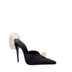 In summary, Magda Butrym’s pointed flower mules in black satin are a true embodiment of luxury and elegance. From their impeccable craftsmanship to their exquisite detailing, they are a testament to the brand’s dedication to creating footwear that transcends trends and stands the test of time. Step into sophistication with these mules and make a statement with every stride.