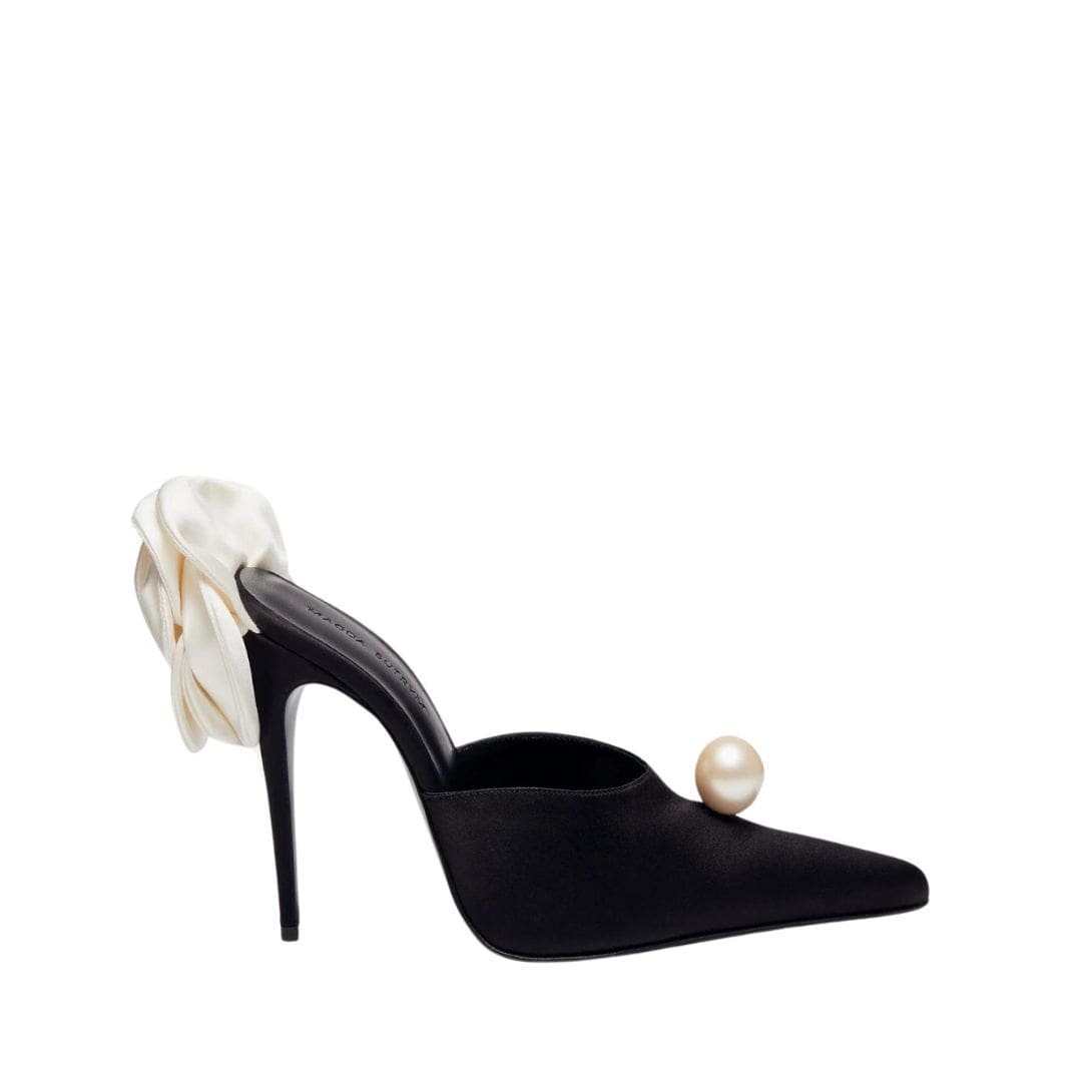 Indulge in the epitome of Italian craftsmanship with these exquisite MAGDA BUTRYM POINTED FLOWER MULES IN BLACK SATIN. Designed to elevate your ensemble, these mules are a testament to the brand’s commitment to luxury and sophistication.
