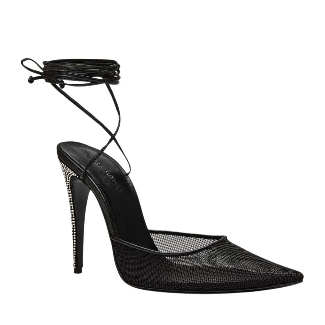 Experience the allure of Italian craftsmanship and Swarovski sparkle with these stunning pointed-toe mule wrap pumps from Magda Butrym. With their impeccable design and luxurious materials, they are the epitome of elegance and sophistication, making them a must-have for the modern woman who appreciates the finer things in life.
