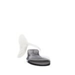 Adding a modern twist to the classic silhouette, clear PVC straps elegantly crisscross the foot, creating a sleek and barely-there aesthetic. Despite their transparency, the PVC straps maintain structural integrity, providing both support and breathability for all-day comfort.