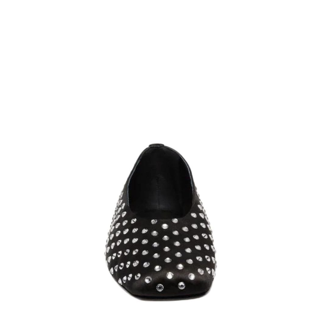 MAGDA BUTRYM SATIN BALLET FLATS IN BLACK CRYSTALS