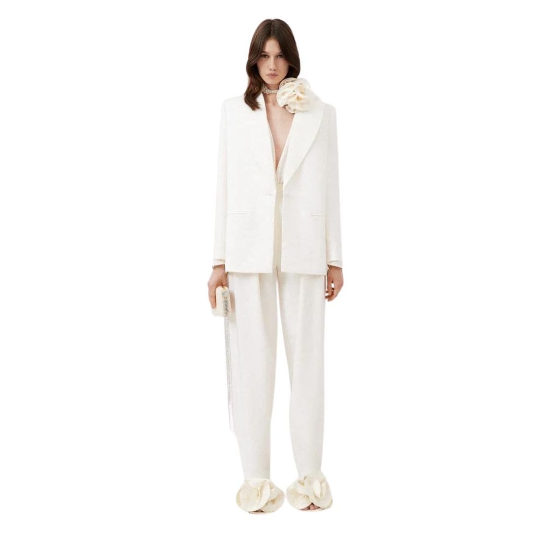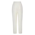 In summary, the Magda Butrym Sheldon Pants in the cream is a sophisticated and versatile wardrobe staple that effortlessly combines style and comfort. With their high-rise design, pleats at the front, relaxed fit, and tapered leg, these pants offer a modern take on classic tailoring. Whether dressed up with heels and a blouse or styled casually with sneakers and a t-shirt, these pants are sure to make a statement with their timeless elegance and refined aesthetic.