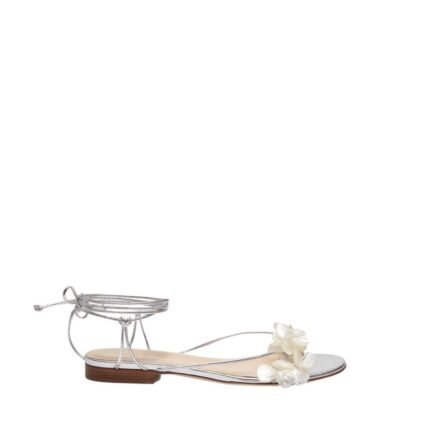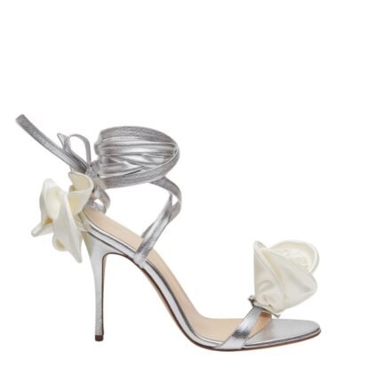 MAGDA BUTRYM DOUBLE FLOWER HEEL SANDALS IN SILVER