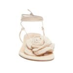 MAGDA BUTRYM WRAP AROUND DOUBLE FLOWER SANDALS IN CREAM TAFETTA