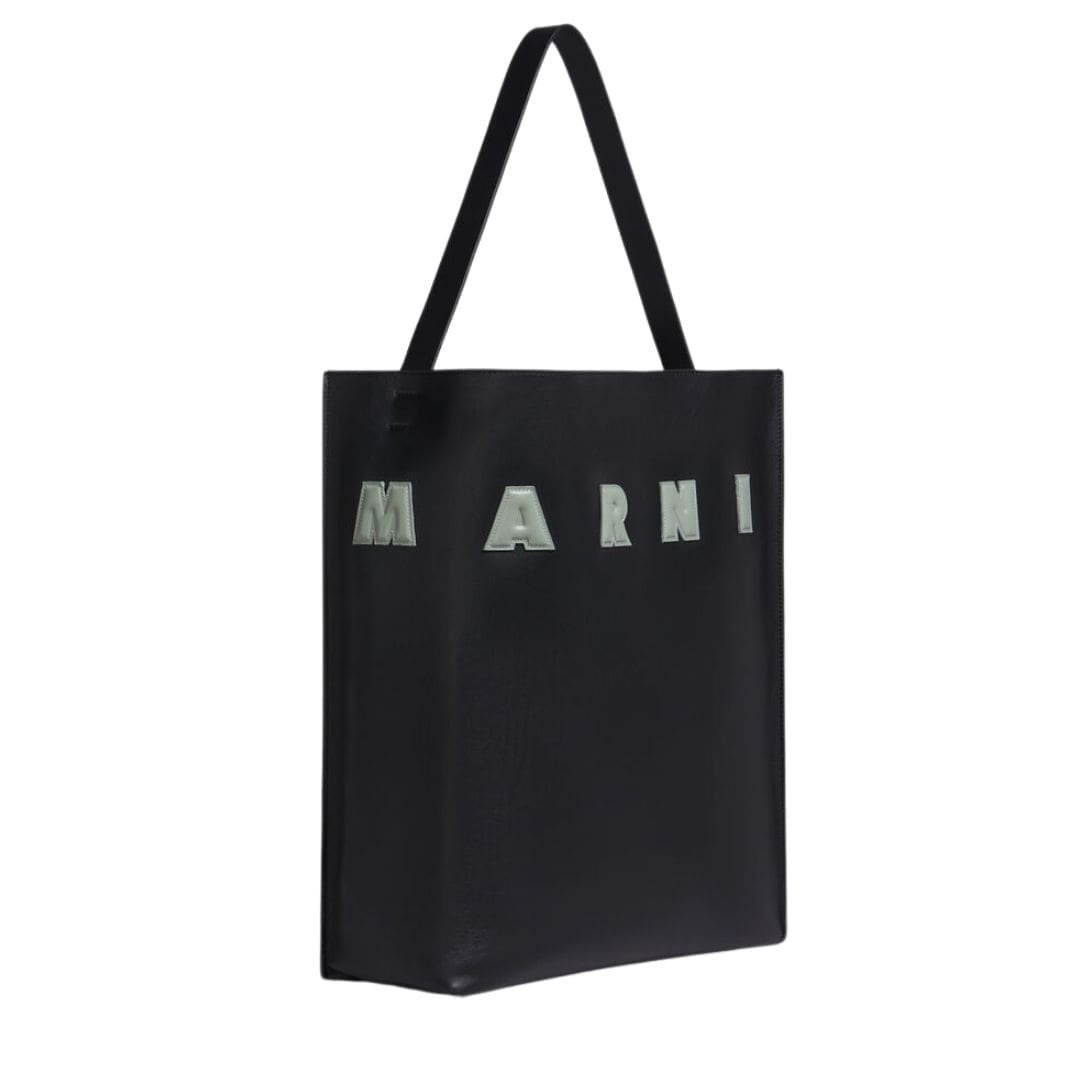 MARNI BLACK AND WHITE LEATHER MUSEO HOBO BAG WITH PATCHES