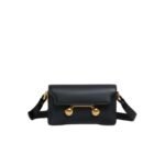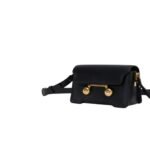 Overall, the Marni Black Leather Trunkaroo Mini Shoulder Bag is a testament to Marni’s design prowess, combining classic leather craftsmanship with modern functionality to create a chic, indispensable accessory for the discerning fashionista.