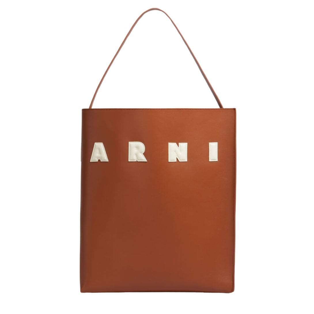 MARNI BROWN AND WHITE LEATHER MUSEO HOBO BAG WITH PATCHES