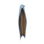 Measuring approximately 2.0 x 11.8 x 8.5 inches, this standing pouch epitomizes both functionality and style. Its dimensions offer ample space to accommodate daily essentials with ease while maintaining a sleek and streamlined silhouette. The inclusion of a detachable leather wrist strap adds a layer of versatility, allowing a seamless transition from handheld elegance to hands-free convenience.