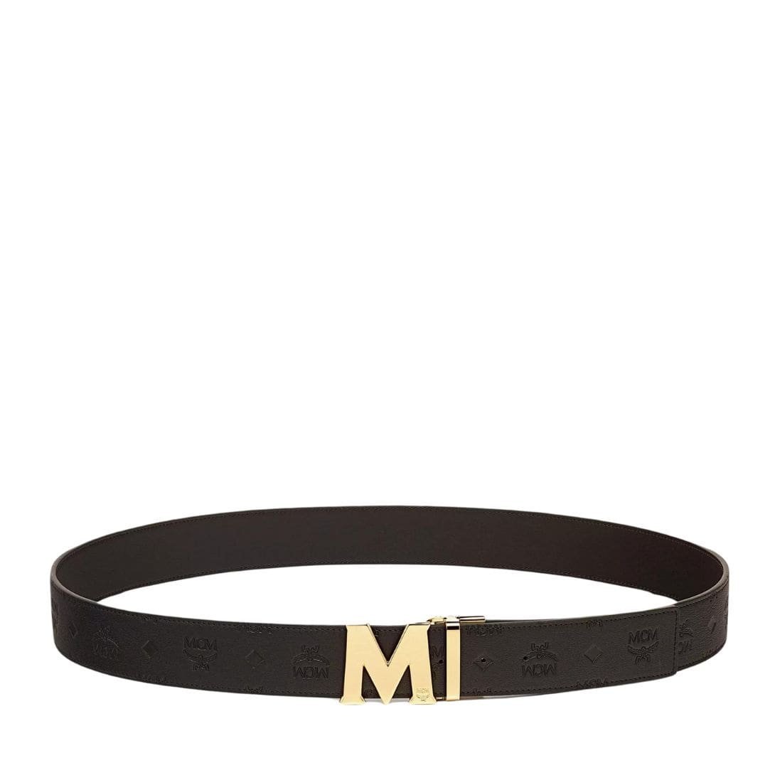 MCM CLAUS M REVERSIBLE BELT 1.75” IN EMBOSSED MONOGRAM LEATHER BLACK/GOLD