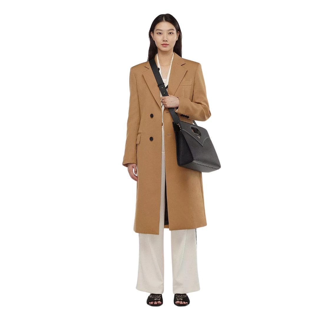The tote is accented with Spanish calf leather handles, inspired by the sharp contours of Bavarian diamonds. These handles have a 2-inch drop, offering a comfortable grip for hand-held carrying. Additionally, the bag comes with a detachable and adjustable leather strap, ranging from 44.7 cm to 48.8 cm in length, allowing for versatile crossbody wear. This feature provides the flexibility to switch between carrying styles to suit your needs and preferences.