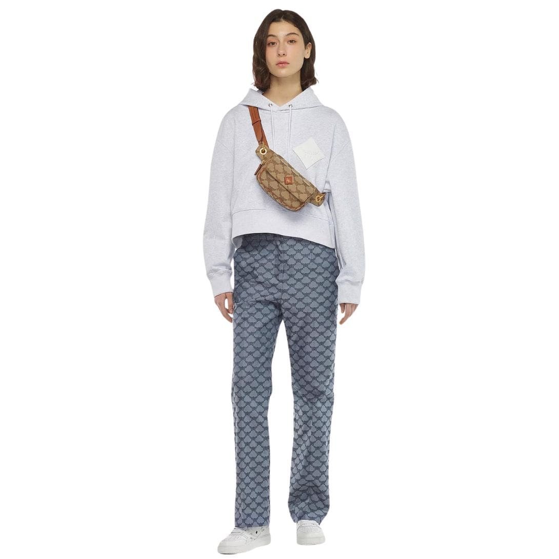 In the realm of luxury accessories, the MCM Himmel Belt Bag In Lauretos Jacquard Beige adorned with the esteemed Lauretos monogram stands as a testament to both elegance and practicality. Crafted with precision and finesse, this exquisite piece is crowned with the signature laurels, meticulously woven into the fabric of the Lauretos monogram jacquard, while the trim is lavishly enveloped in natural Nappa leather, renowned for its supple texture and enduring quality.