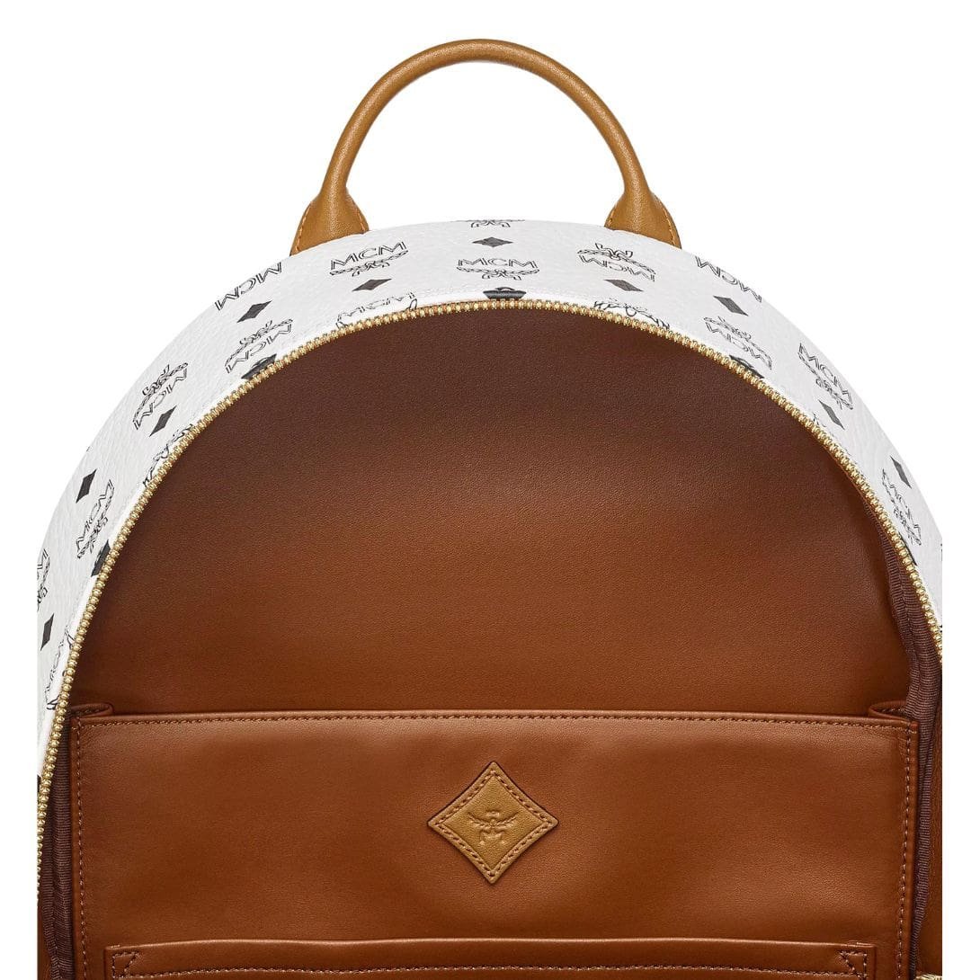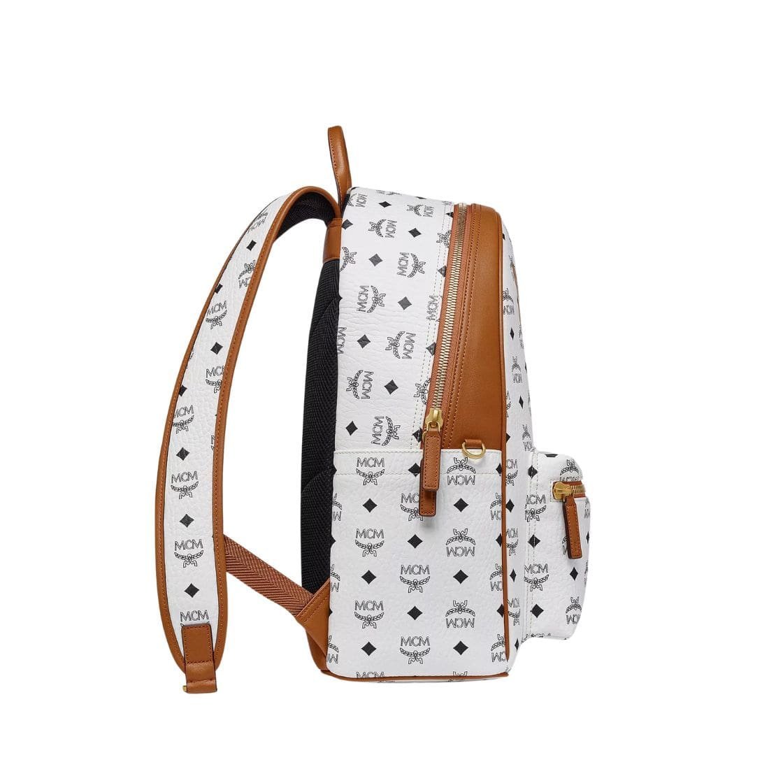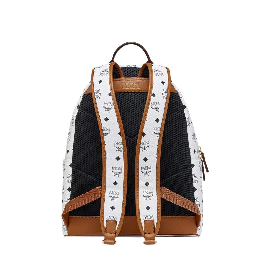 MCM MEDIUM STARK BACKPACK IN MEGA LAUREL VISETOS WHITE