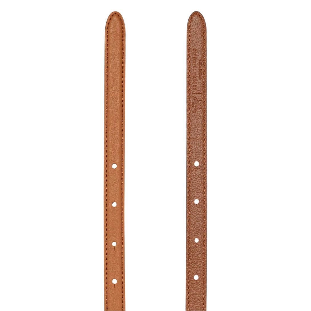 Turning to the back of the accessory, the meticulous craftsmanship continues with embossed leather sculpted to perfection. This thoughtful detail not only enhances the belt’s aesthetic appeal but also speaks to the brand’s dedication to every aspect of design, ensuring a seamless and polished finish from every angle.